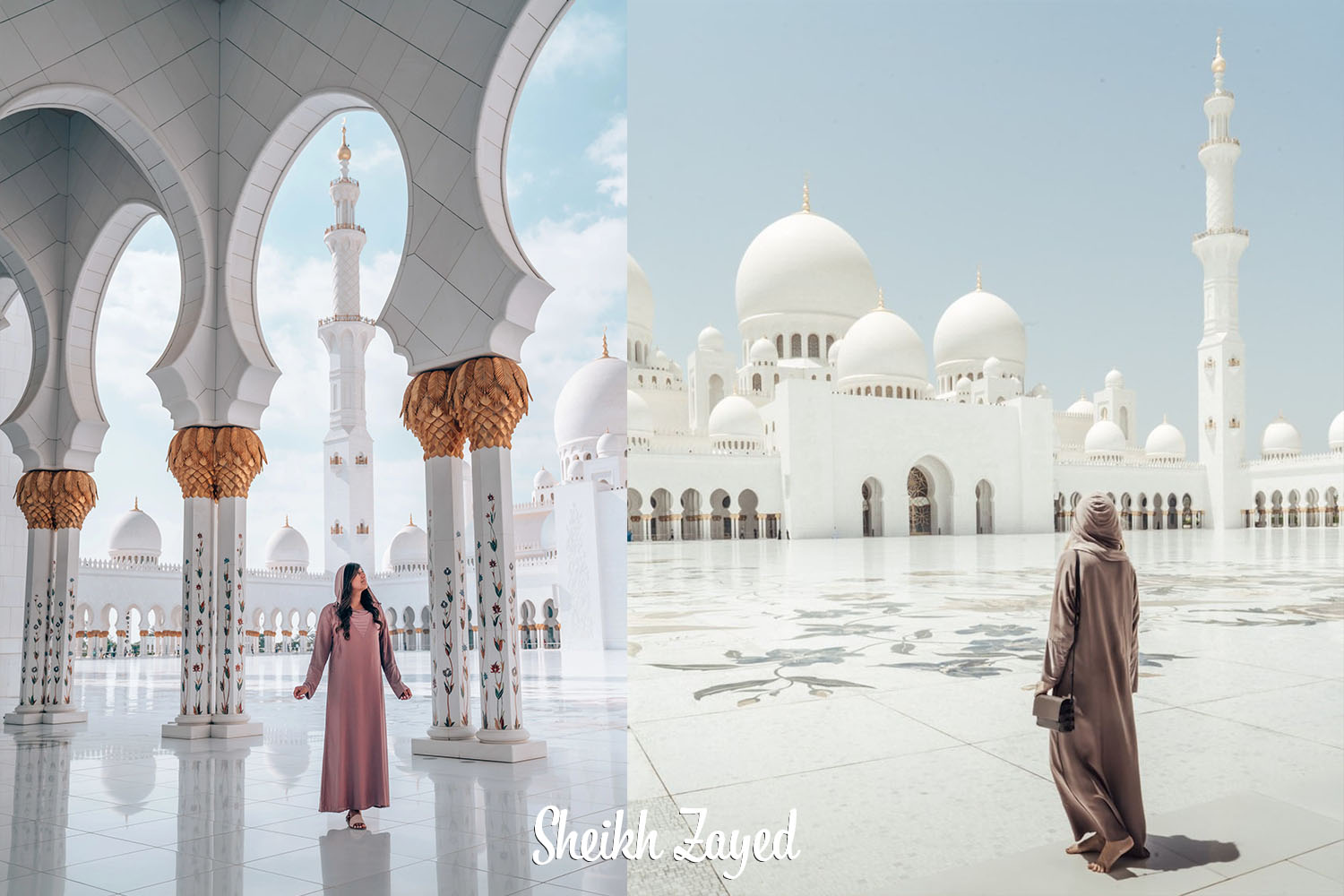- Đoàn tham quan Thánh đường Hồi giáo Sheikh Zayed – niềm tự hào của Các Tiểu vương quốc Ả Rập Thống nhất. Đây là thánh đường xa hoa nhất thế giới, với những vật liệu xa xỉ như đá cẩm thạch trắng, pha lê màu Swarovski, thảm Ba Tư… Cả thánh đường có đến 82 mái vòm và 1.048 chiếc cột bên ngoài có hình cây chà là – loài cây đặc trưng của Trung Đông. Ngoài ra thánh đường còn có sức chứa đáng kinh ngạc với hơn 40.000 tín đồ cầu nguyện cùng một lúc.